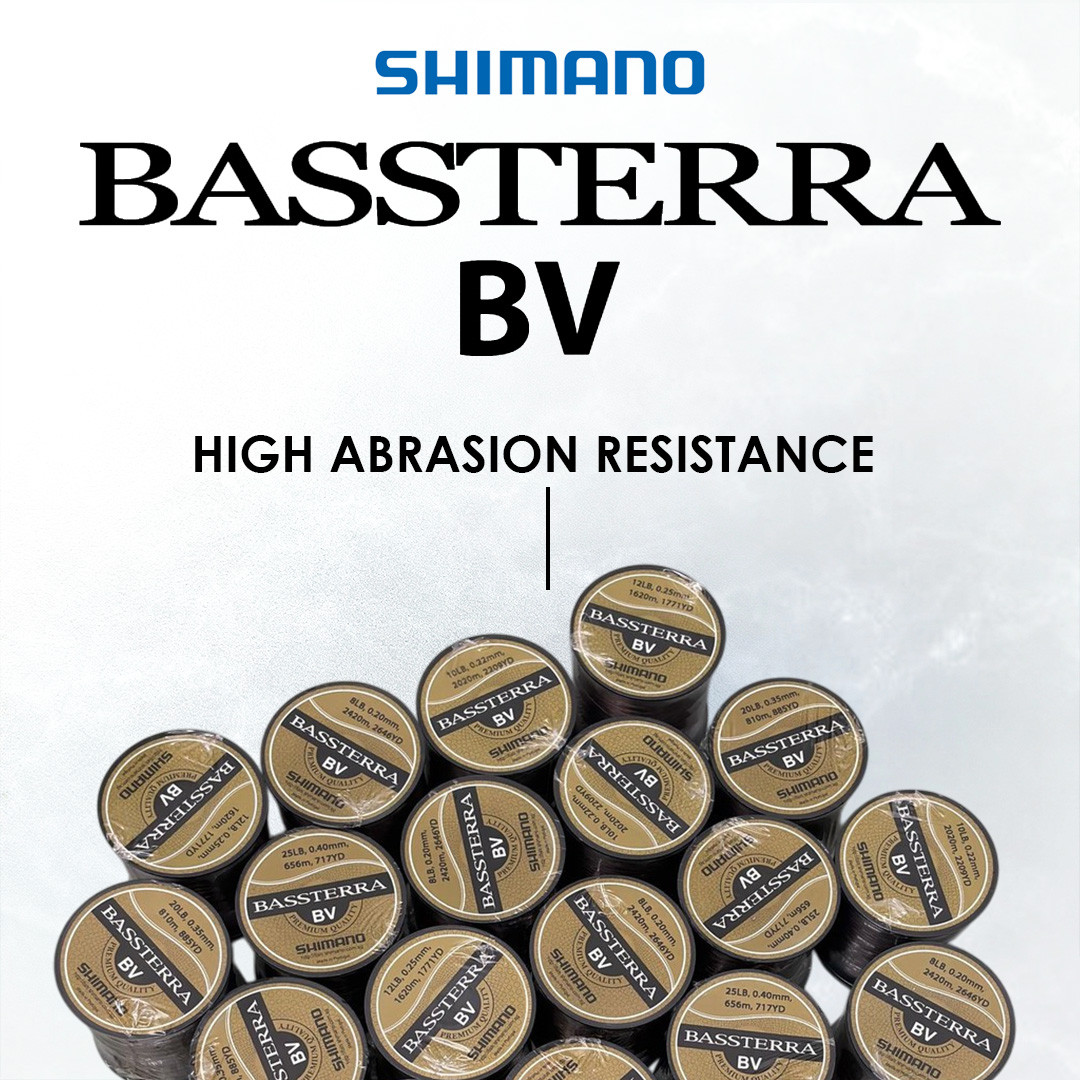 Shimano Bassterra BV ialah tali monofilament berkualiti tinggi yang direka untuk pemancing yang memerlukan tali yang kuat, fleksibel dan tahan lasak untuk pelbagai teknik pancingan. Tali ini memberikan keseimbangan antara kekuatan, keanjalan dan ketahanan geseran, menjadikannya sesuai untuk kegunaan di kolam, sungai dan laut.
