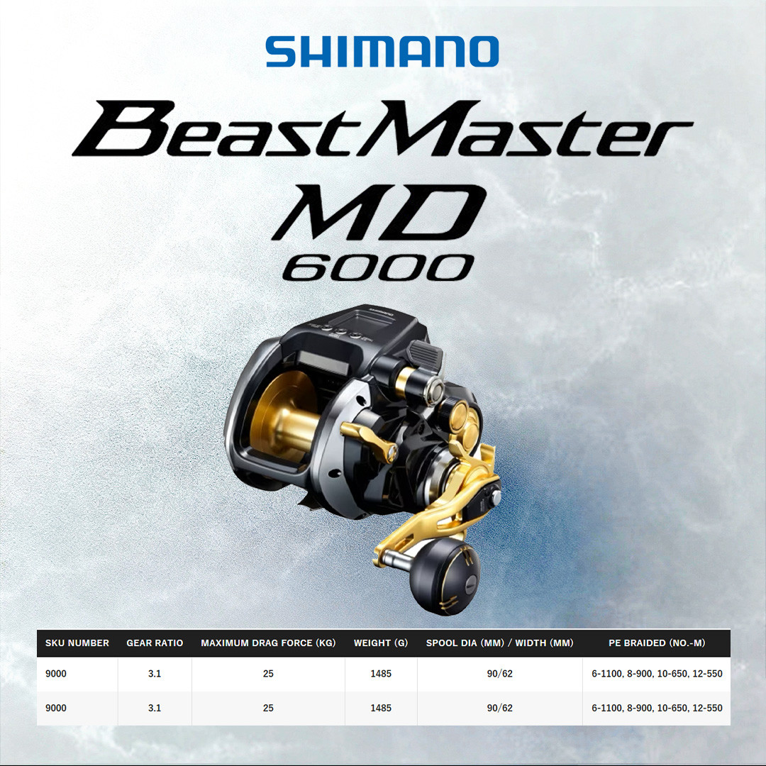 Direka untuk pemancing yang memerlukan kuasa tinggi dalam saiz reel yang lebih kompak. Dilengkapi dengan GIGA-MAX Motor generasi terbaru, reel ini mampu memberikan prestasi karauan yang sangat kuat dan stabil walaupun ketika bertarung dengan ikan besar di laut dalam. Dengan kombinasi teknologi Shimano dan kapasiti tali yang besar, Beastmaster MD 6000 menjadi pilihan ideal untuk deep sea fishing dan heavy bottom fishing.