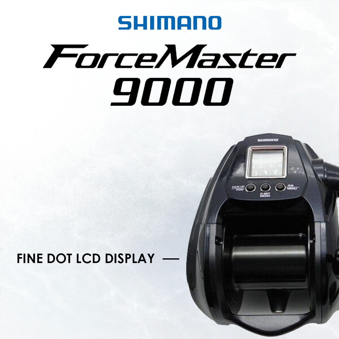 Shimano Forcemaster 9000 – ialah electric reel heavy-duty bersaiz besar yang direka untuk pancingan laut dalam ekstrem. Dengan kapasiti tali sangat besar dan motor berkuasa tinggi, model ini sesuai untuk kedalaman maksimum serta spesies pelagik dan ikan dasar trofi.