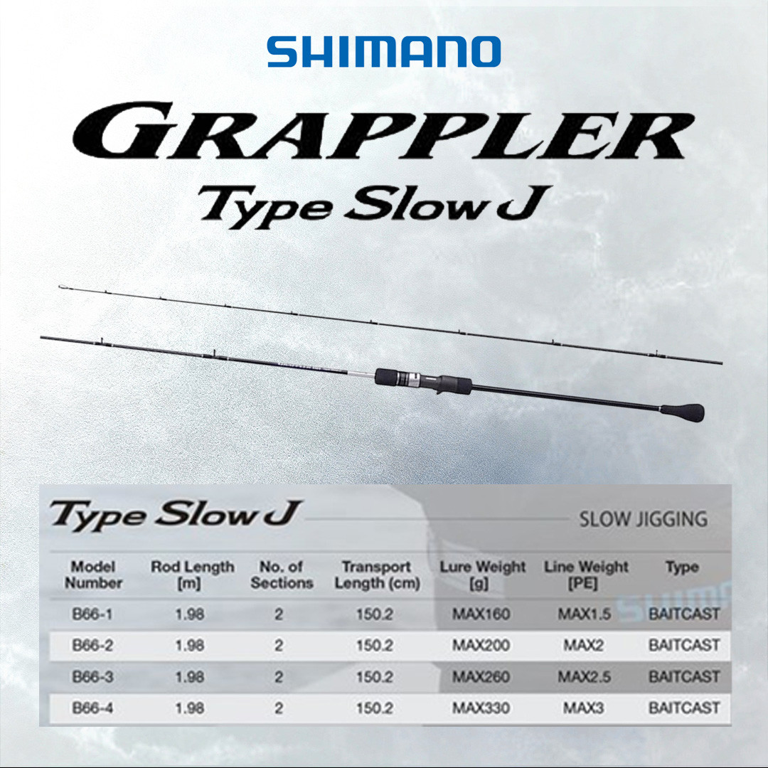 Shimano Grappler BB Type Slow J ialah joran khas untuk teknik slow pitch jigging di laut dalam. Rod ini direka dengan blank karbon yang fleksibel tetapi mempunyai backbone yang kuat untuk menghasilkan aksi jig yang lebih semulajadi semasa jatuhan (fall action). Dengan sensitiviti yang tinggi, pemancing dapat merasai sentapan halus ikan ketika jig jatuh. Rod ini sangat sesuai digunakan untuk slow jigging, deep sea jigging dan offshore boat fishing, terutamanya untuk spesies seperti kerapu, jenahak, amberjack dan ikan dasar laut dalam.