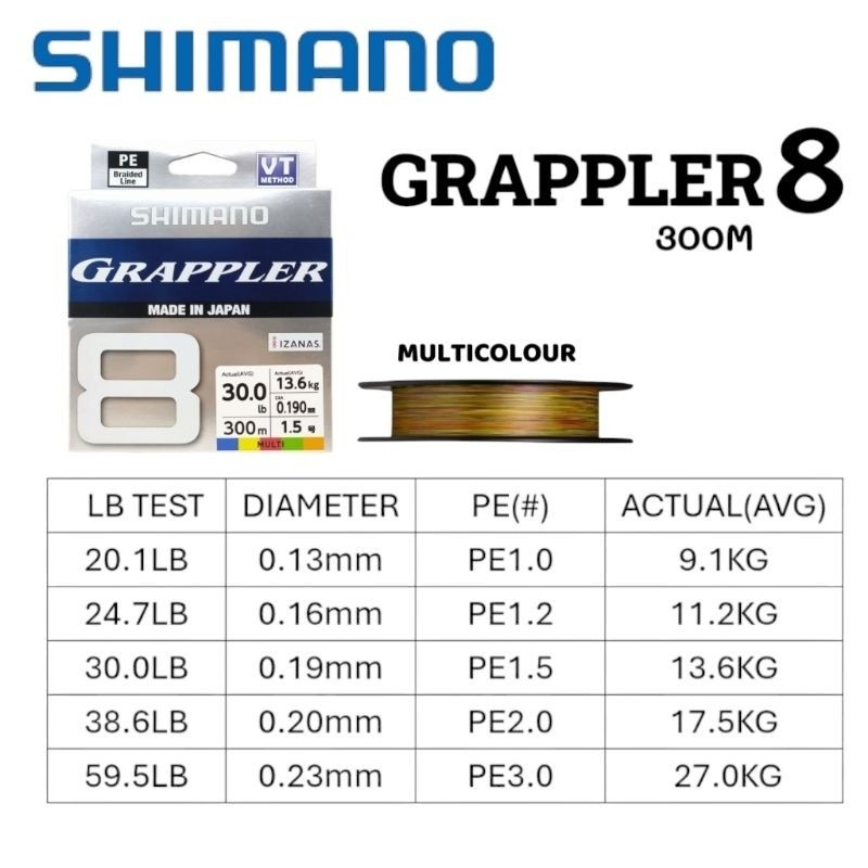 Shimano Grappler X8 ialah tali braided premium yang direka khas untuk pemancing laut yang memerlukan kekuatan tinggi, diameter nipis dan sensitiviti maksimum. Menggunakan teknologi IZANAS PE fiber, tali ini memberikan kekuatan yang sangat baik serta permukaan yang lebih licin untuk lontaran jauh dan kawalan jig yang lebih tepat. Struktur 8 helai anyaman menghasilkan tali yang lebih bulat dan lancar ketika keluar dari spool.