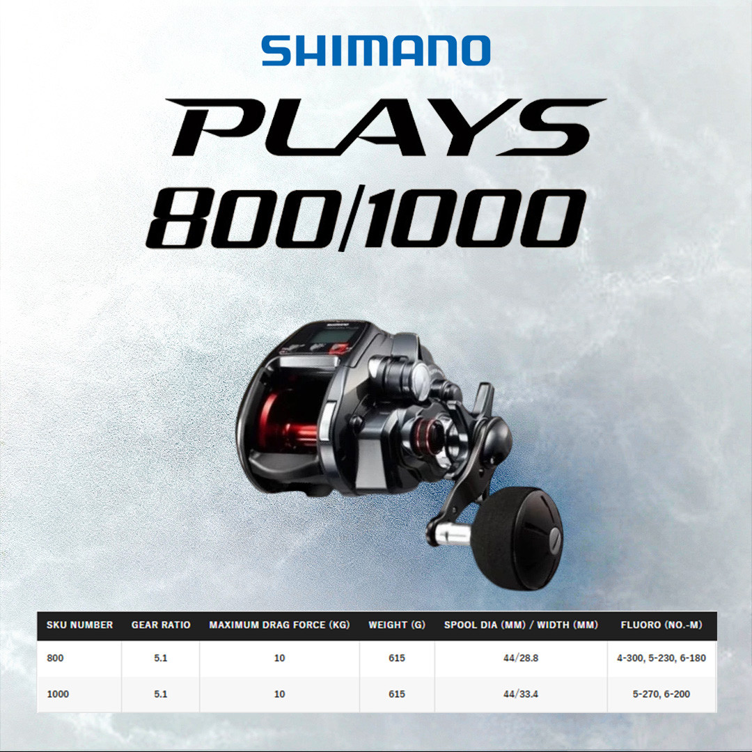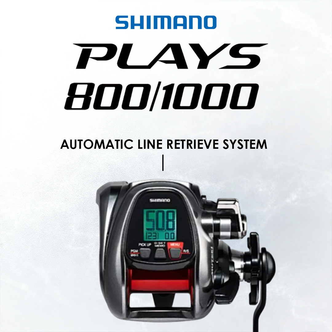Shimano Plays 800 & 1000 2017 – ialah electric reel kompak yang direka untuk pancingan laut dalam ringan hingga sederhana. Saiz lebih kecil berbanding siri Beastmaster, tetapi masih menawarkan kuasa motor yang stabil untuk bottom fishing dan teknik apollo.