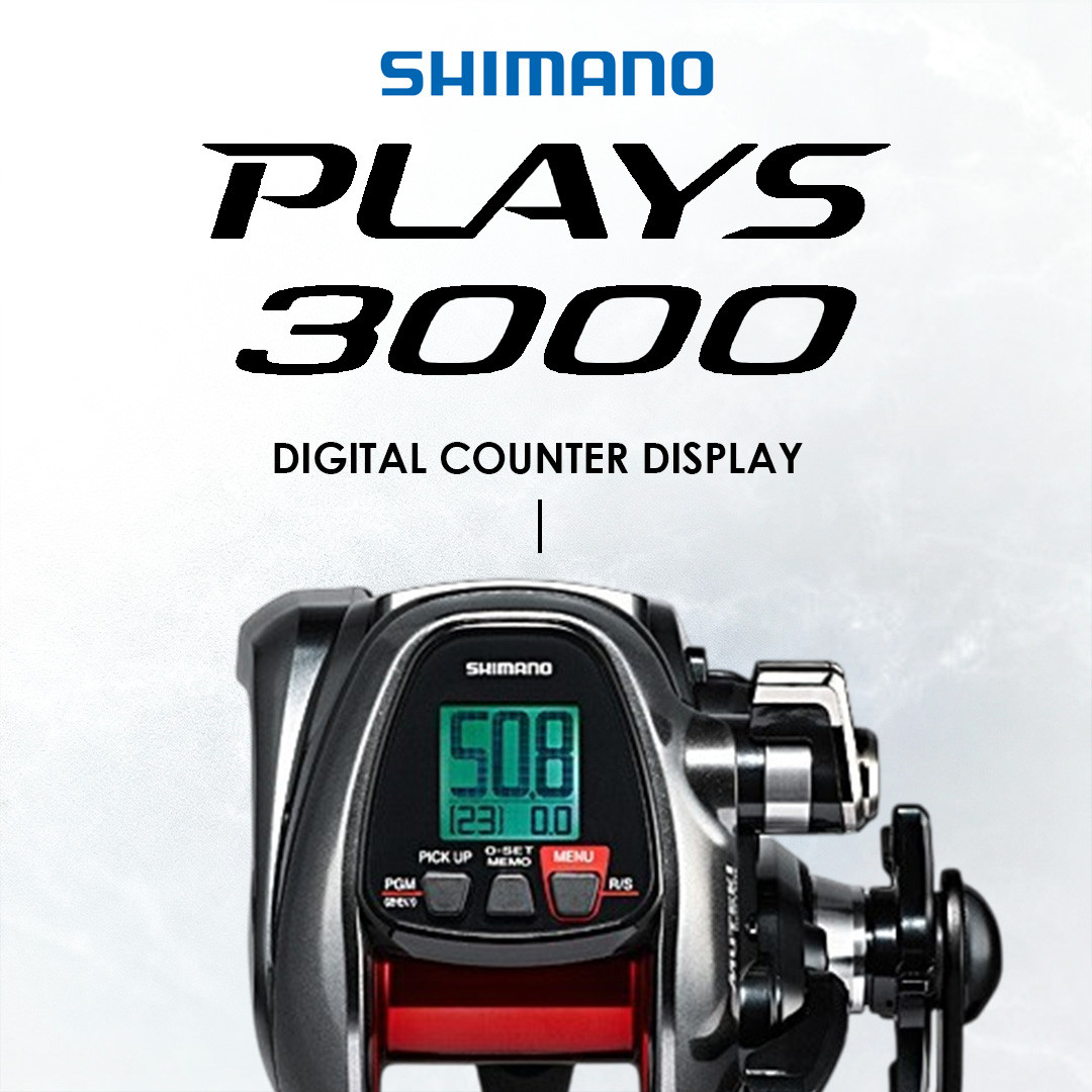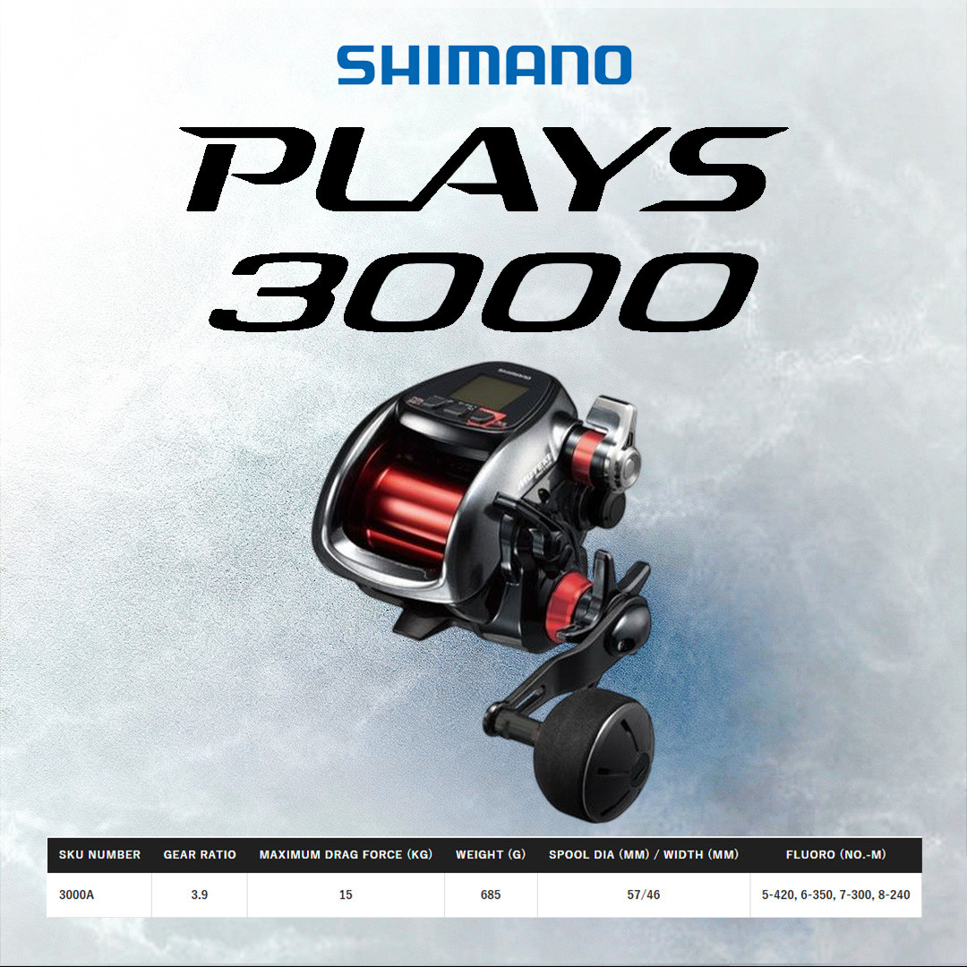 SHIMANO PLAYS 3000XP – ialah electric reel berkuasa tinggi dalam siri Plays yang direka untuk pancingan laut dalam dan bottom fishing berat. Versi “XP” memberi kuasa tarikan lebih kuat berbanding model biasa, sesuai untuk kedalaman tinggi dan ikan dasar besar.