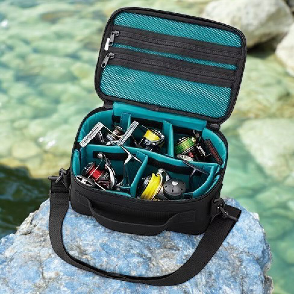 Reka bentuknya kompak tetapi mempunyai kapasiti yang besar, sesuai untuk pemancing yang membawa beberapa reel ketika trip memancing. Bahagian dalam beg membantu melindungi reel daripada calar, hentakan serta habuk semasa pengangkutan.