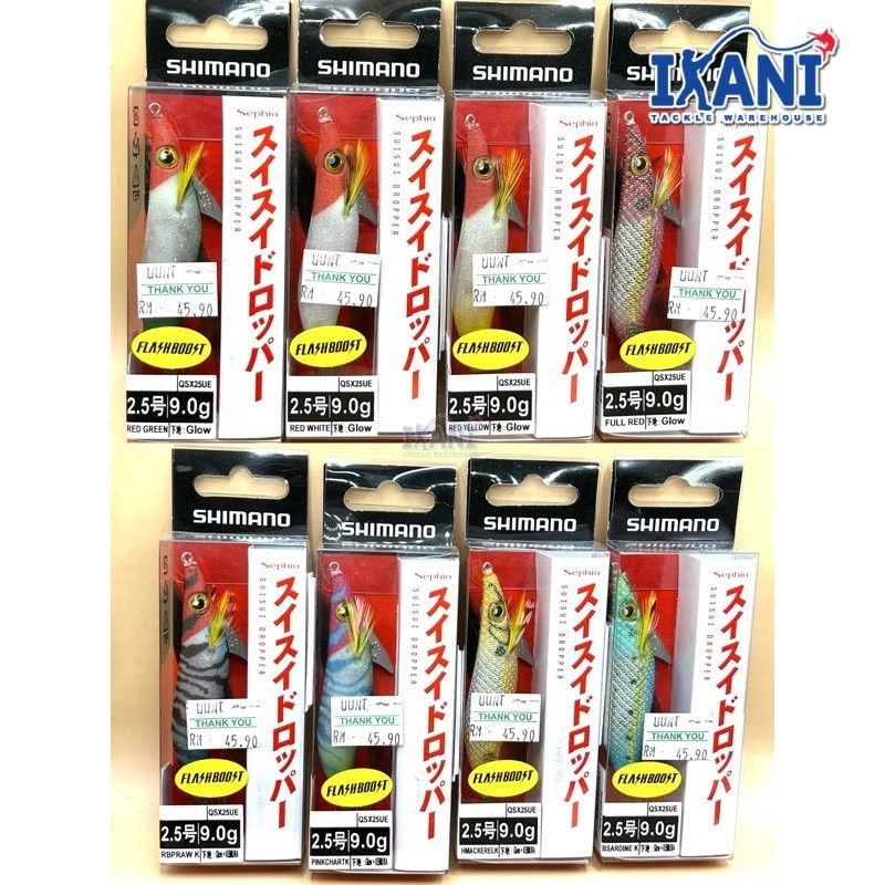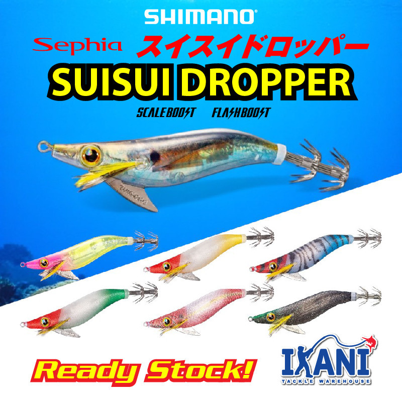 Shimano Sephia Suisui Dropper ialah candat sotong khas yang direka untuk teknik Ika Metal / Omorig bagi menarik sotong dengan aksi renangan yang natural dan stabil di dalam air. Reka bentuk badan yang seimbang membolehkan candat bergerak dengan lembut ketika dijatuhkan atau ditarik perlahan, menjadikannya lebih efektif untuk menarik perhatian sotong walaupun dalam keadaan arus atau air gelap.