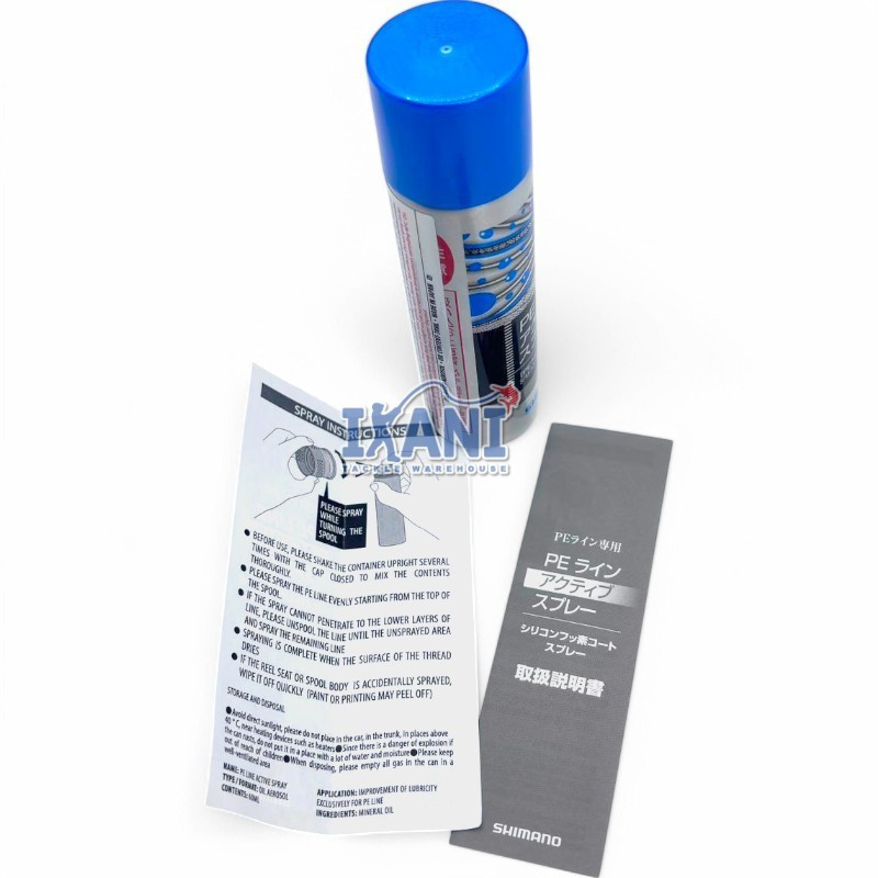 Shimano PE Line Active Spray ialah semburan khas yang direka untuk meningkatkan prestasi tali PE ketika memancing. Dengan hanya satu semburan, produk ini membantu menjadikan tali lebih licin, mengurangkan geseran serta meningkatkan ketahanan tali. Ia juga membantu menghalang tali daripada mudah berbulu dan memudahkan proses line control semasa casting atau jigging.