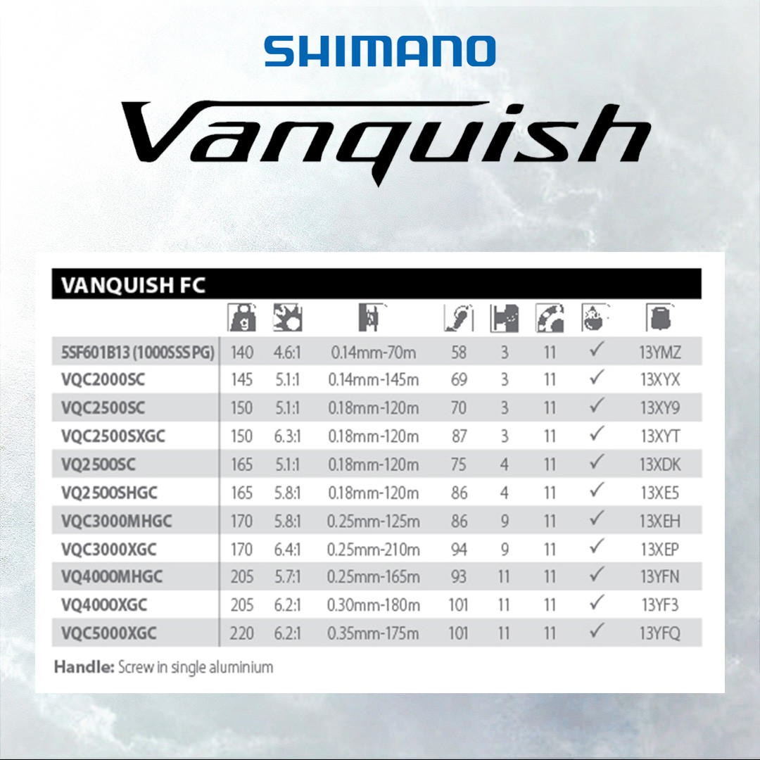 SHIMANO VANQUISH 23- ialah reel spinning ultra ringan dalam kelas flagship Shimano. Direka untuk sensitiviti maksimum, kayuhan paling halus dan respons paling pantas — sesuai untuk pemancing yang mahukan prestasi tertinggi tanpa kompromi.
